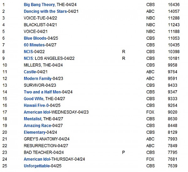 2014년 4월 미드 시청률 순위